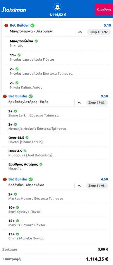 Τι να πούμε τώρα για τούτον τον τύπο! Euroleague, τρία ματσάκια και συνολικά 16 επιλογές! Και όλες… τσεκ!