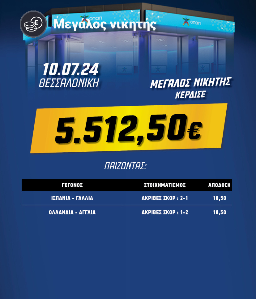 Το σημερινό, έρχεται από πρακτορείο του ΟΠΑΠ στη Θεσσαλονίκη, με τον μεγάλο νικητή να σηκώνει 5,5 χιλιάρικα!