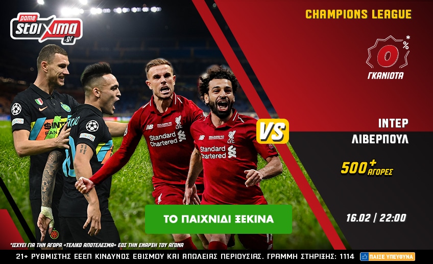 Ίντερ – Λίβερπουλ με 0% γκανιότα** στο Pamestoixima.gr!