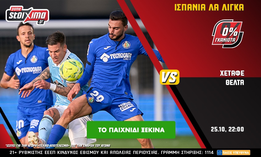 Στο πρόγραμμα της Δευτέρας (25/10), λοιπόν, υπάρχει η πολύ σημαντική αναμέτρηση για το ισπανικό πρωτάθλημα ανάμεσα στη Χετάφε και τη Θέλτα. Ποια εκ των δύο θα καταφέρει να φτάσει στο θετικό αποτέλεσμα; Στο ανανεωμένο Pamestoixima.gr το Χετάφε – Θέλτα το ζεις με 0% γκανιότα**, ειδικά στοιχήματα σε ενισχυμένες αποδόσεις, ενώ μπορείς να το παρακολουθήσεις μέσω Live Streaming*.