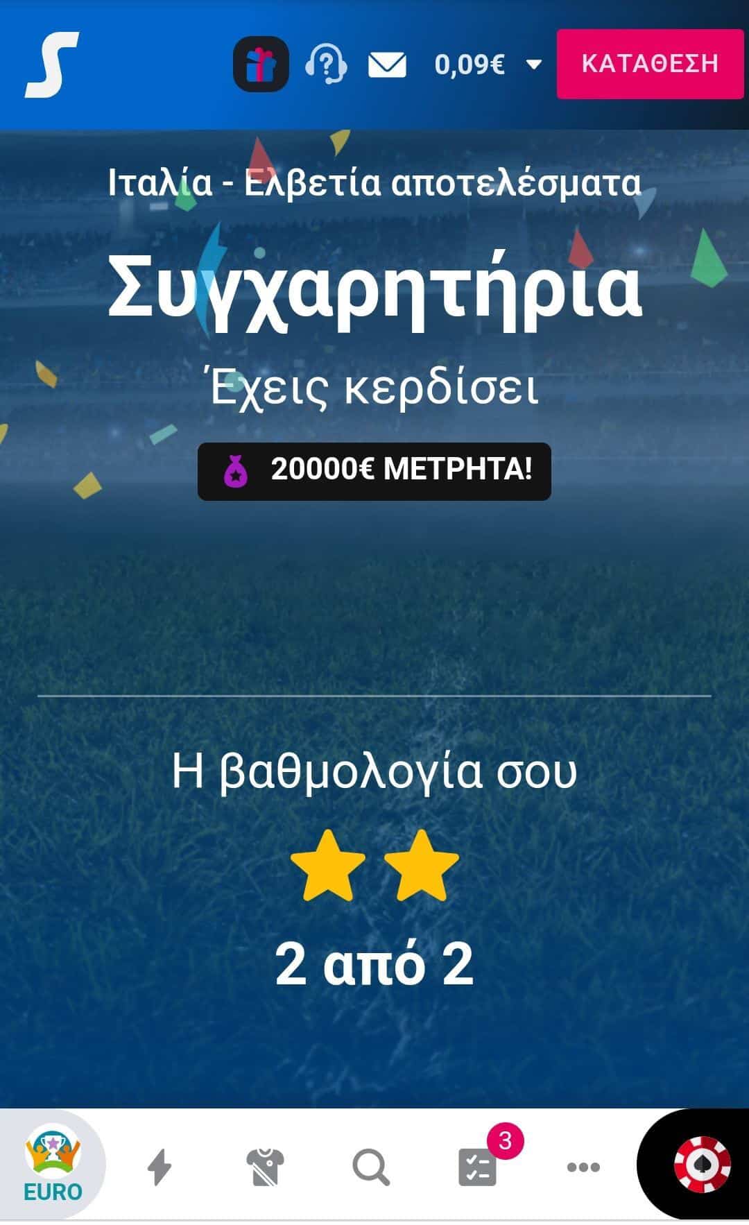 Μία απίθανη έμπνευση και ένα αυτογκόλ σε ματς που έληξε 1-0, απέφεραν 20.000€ εντελώς δωρεάν* σε μέλος της Stoiximan στο Ιταλία-Ελβετία!