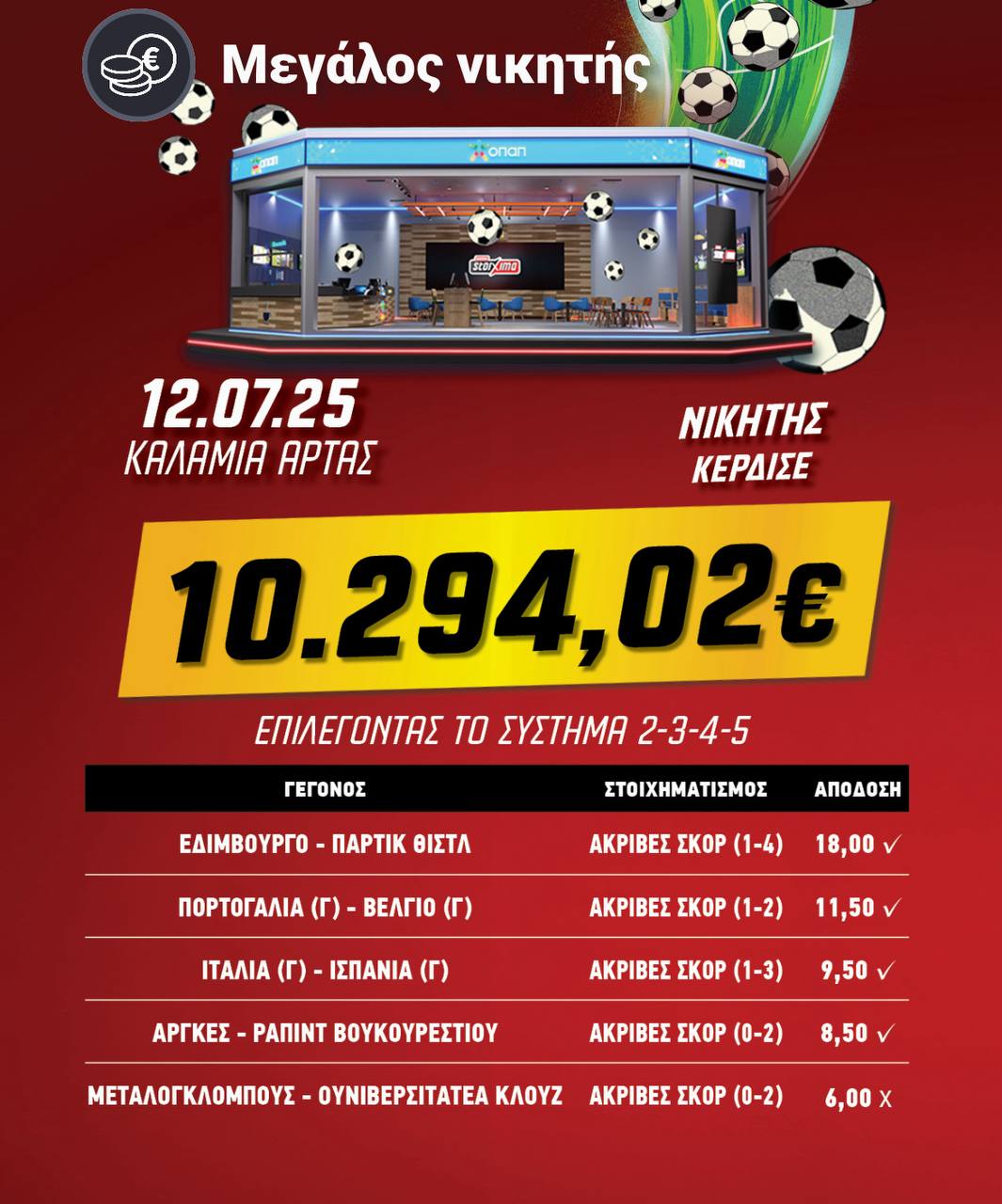 Τι πήρε; Στην τσέπη 10.294 ευρώπουλα και αναρωτιόμαστε τί θα μπορούσε να συμβεί αν καθόταν και η Κλουζ στο 0-2. Με αυτά τα τέσσερα έβγαλε απόδοση 16.715. Αν έβγαινε και το τελευταίο, θα είχε 100.000 απόδοση! Ίσως του έδιναν μετοχές του ΟΠΑΠ αντί για χρήματα, σε μια τέτοια περίπτωση…