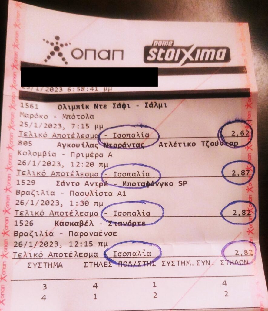 Μαρόκο και Ολιμπίκ Ντε Σάφι – Σάλμι. Κολομβία και Αγκουίλας Ντοράντας – Ατλέτικο Τζούνιορ. Βραζιλία με Σάντο Αντρέ – Μποταφόγκο και Κασκαβέλ – Σιανόρτε. Όλα στο Χ. Καρέ των ισοπαλιών με τιμές από 2.62 μέχρι 2.87.