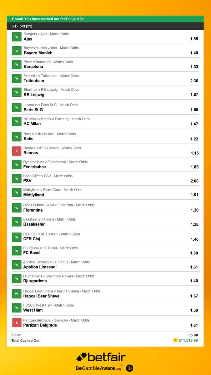 Η συνολική απόδοση του δελτίου ξεπερνούσε τις 11.000 και με τις πέντε λίρες του πονταρίσματος, το μέγιστο κέρδος έφτανε τις 55.000! Αλλά, καλά είναι και τα 11 χιλιάρικα που cashαρε, δεν συμφωνείτε;