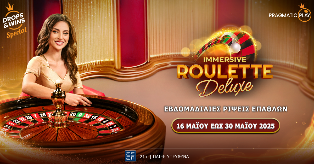 Μοναδική προσφορά* γεμάτη έπαθλα από την Παρασκευή 16 Μαΐου έως την Παρασκευή 30 Μαΐου 2025 στη live Immersive Roulette Deluxe της Pragmatic Play.