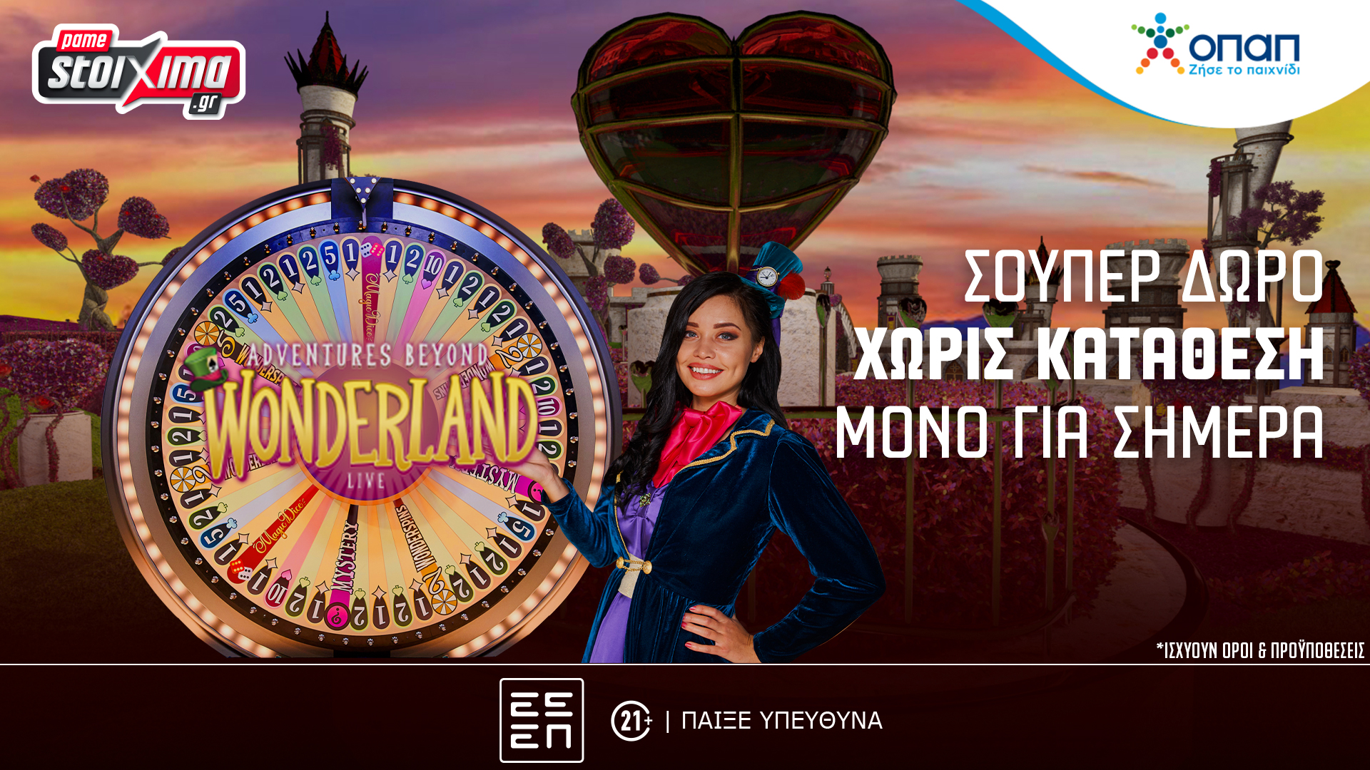 Μόνο για σήμερα τους περιμένει όλους μια σούπερ έκπληξη στο Adventures Beyond Wonderland στο Live Casino του Pamestoixima.gr.