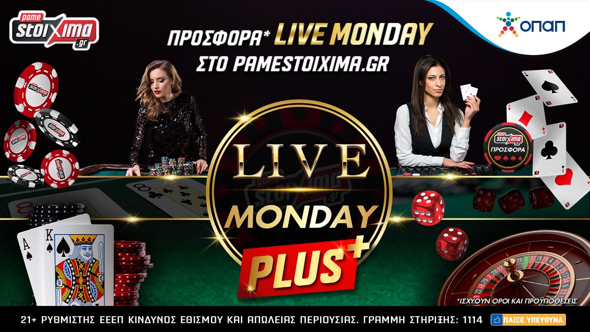 Στο Live Monday παίζεις σε όλα τα κορυφαία live παιχνίδια του Casino και έχεις μία προσφορά έκπληξη*. Τώρα παίζεις με επιστροφή σε όλα ta live game shows, σε όλες τις διαθέσιμες ρουλέτες και τα live τραπέζια με blackjack με την σούπερ προσφορά της Δευτέρας. Ελληνικές ρουλέτες, Lightning Roulette, Blackjack Party, Speed Blackjack, Dream Catcher, Monopoly Live και Buffalo Blitz live είναι μόνο μερικά από τα live παιχνίδια που συμμετέχουν στην σημερινή προσφορά*. Μην χάνεις χρόνο… τώρα ξεκινάς κι εσύ τη ζωντανή δράση και το Pamestoixima.gr Casino είναι εδώ σε περίπτωση που η τύχη δεν είναι με το μέρος σου!