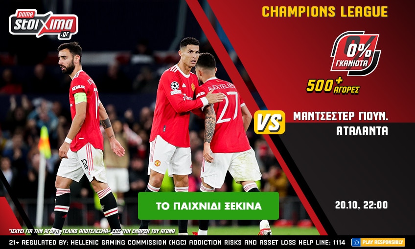 Στο πρόγραμμα της Τετάρτης (20/10), λοιπόν, ξεχωρίζει το παιχνίδι της Μάντσεστερ Γιουνάιτεντ με την Αταλάντα. Πολύ σημαντικό παιχνίδι, θα τα καταφέρει η «παρέα» του Κριστιάνο Ρονάλντο ή οι Ιταλοί θα πάρουν βαθμούς στο Μάντσεστερ; Το Μάντσεστερ Γιουνάιτεντ – Αταλάντα το ζεις με 0% γκανιότα** και πάνω από 500 special bets σε πολύ δυνατές αποδόσεις στο ανανεωμένο Pamestoixima.gr!