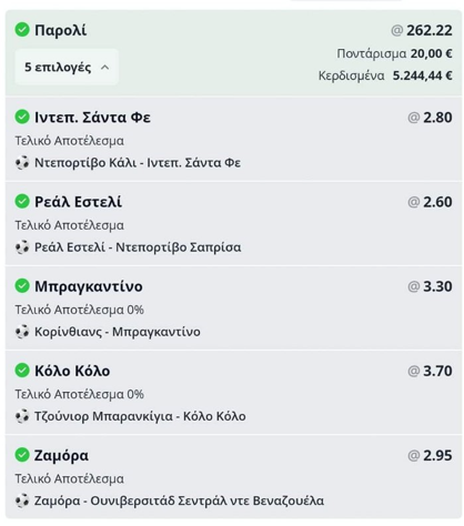 Ίντεπεντιέντε Σάντα Φε στο 2.80, Ρεάλ Εστελί στο 2.60, Μπραγκαντίνο στο 3.30, Κόλο Κόλο στο 3.70 και Ζαμόρα στο 2.95!