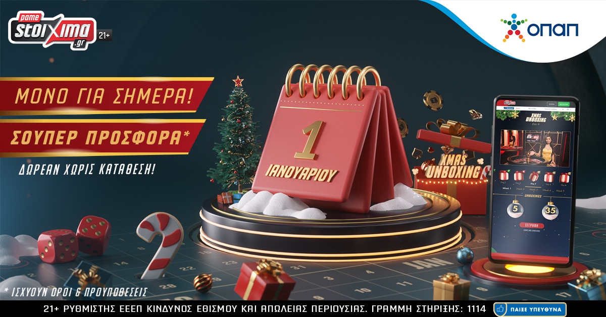 Τα Χριστούγεννα έφτασαν και τo Pamestoixima.gr φέρνει… ένταση και μεγαλύτερα δώρα για τους παίκτες του. Έτσι λοιπόν, ΜΟΝΟ ΓΙΑ ΣΗΜΕΡΑ (06/01), οι φίλοι του Live casino του Pamestoixima.gr θα έχουν την ευκαιρία να επωφεληθούν μιας μοναδικής, καταπληκτικής δωρεάν προσφοράς* για όλους, χωρίς οποιαδήποτε προσφορά κατάθεσης ή τζίρου.