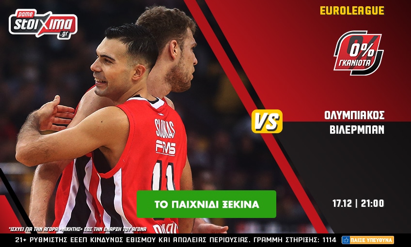 Στο πρόγραμμα της Παρασκευής (17/12) ξεχωρίζουν τα παιχνίδια της EuroLeague. Ο Ολυμπιακός υποδέχεται τη Βιλερμπάν με στόχο να κάνει το 9/9 στο ΣΕΦ και στο Pamestoixima.gr τη νέα δοκιμασία των «ερυθρόλευκων» τη ζεις παραπάνω με 0% γκανιότα** και πολλά ειδικά στοιχήματα παικτών και ομάδων στις αποδόσεις που πάντα ήθελες!