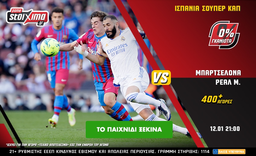 Από εκεί και πέρα, στο πρόγραμμα της Τετάρτης (12/01) γίνεται ένας χαμός από σπουδαίους αγώνες. Πιο συγκεκριμένα, το Μπαρτσελόνα – Ρεάλ Μαδρίτης για το Σούπερ Καπ Ισπανίας και το Ίντερ – Γιουβέντους για το Σούπερ Καπ Ιταλίας τα ζεις παραπάνω στο Pamestoixima.gr με 0% γκανιότα** και πάνω από 400 ειδικές αγορές για τον κάθε αγώνα, στις αποδόσεις που πάντα ήθελες! Επίσης, ο Παναθηναϊκός ΟΠΑΠ υποδέχεται την ΤΣΣΚΑ Μόσχας σε ακόμα ένα παιχνίδι με 0% γκανιότα** στο Pamestoixima.gr, αλλά και κορυφαία απόδοση στο ειδικό στοίχημα «Ιωάννης Παπαπέτρου πρώτος σκόρερ του αγώνα»!