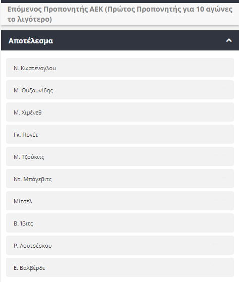 Αρχικά ο Έλληνας τεχνικός που έμεινε για μία σεζόν στην ΑΕΚ(2018-2019), ίσως έχει την… δεύτερη ευκαιρία που ψάχνει, ενώ ο μεγάλος πόθος που ακούει στο όνομα Μανόλο Χιμένεθ, με ήδη τρεις θητείες στην «Ένωση». Ο Ισπανός τεχνικός κατά την παραμονή του στην χώρα μας κατάφερε να κερδίσει ένα Κύπελλο (2011) και ένα πρωτάθλημα (2018) και για τον κόσμο της ομάδας είναι ο καταλληλότερος να αντικαταστήσει τον Ιταλό τεχνικό.