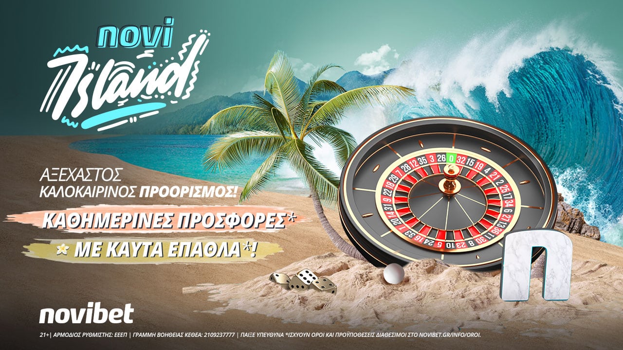 Για ακόμα ένα καλοκαίρι το live casino της Novibet προσφέρει μία πλούσια γκάμα προσφορών*, με απώτερο στόχο την αναβάθμιση της εμπειρίας παιχνιδιού. Γι’ αυτό τον λόγο παρουσιάζει το εντυπωσιακό Novi Island. Πρόκειται για έναν ξεχωριστό προορισμός του καλοκαιριού, με καθημερινές προσφορές*, ανεπανάληπτη διασκέδαση και καυτά έπαθλα*!