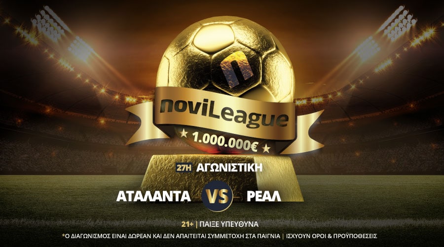 Στο πρόγραμμα της 27ης αγωνιστικής του μεγάλου διαγωνισμού της Novibet, βρίσκεται η πρώτη αναμέτρηση Αταλάντα και Ρεάλ Μαδρίτης (22:00), για τη φάση των «16» του Champions League.