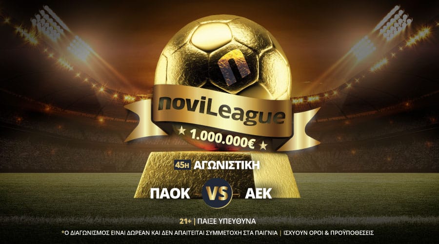Στο πρόγραμμα της 45ης αγωνιστικής του μεγάλου διαγωνισμού της Novibet βρίσκεται το πρώτο ντέρμπι «δικεφάλων» από τα τέσσερα που θα δούμε τον επόμενο ένα μήνα, ΠΑΟΚ-ΑΕΚ, για την πρεμιέρα των πλέι οφ της Super League.