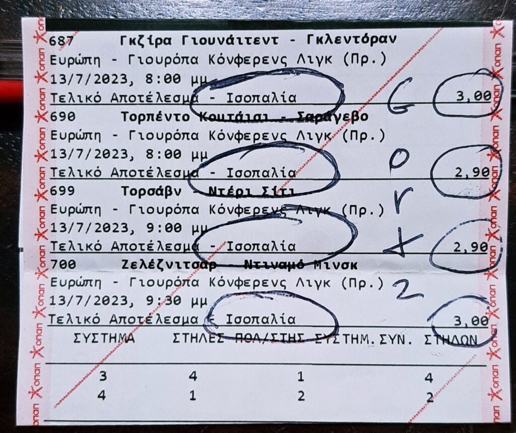 Ρίχνεις δύο δελτία! Χώνεις και στα δύο τα τρία «στανταράκια» και παίζεις με το τέταρτο! Αυτό έκανε ο Gortz Mark στο Conference League.