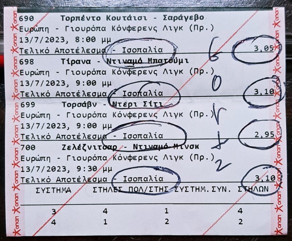 Τα δύο… παιχνίδια που θα συμπλήρωναν τα καρεδάκια στα δύο δελτία, ήταν το Γκζίρα Γιουνάιτεντ – Γλεντόραν και Τίρανα – Ντιναμό Μπατούμι. Ακόμα και αυτά έκατσαν στο Χ!