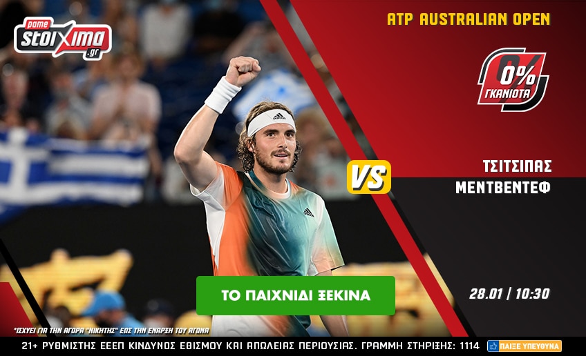 Με 0% γκανιότα** και πολλά ειδικά στοιχήματα στις αποδόσεις που πάντα ήθελες, ζεις στο Pamestoixima.gr και τον σπουδαίο ημιτελικό του Australian Open ανάμεσα στον Τσιτσιπά και τον Μεντβέντεφ!