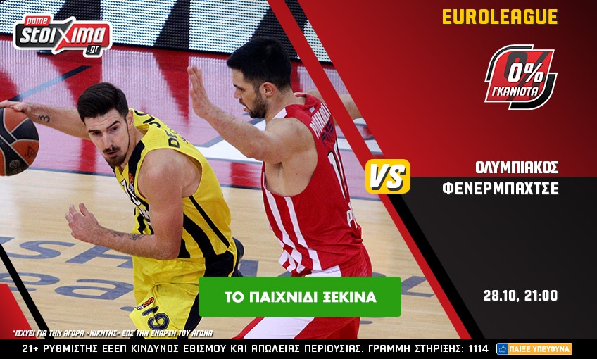 Η «διαβολοβδομάδα» στη EuroLeague συνεχίζεται με αμείωτη ένταση και το βράδυ της Πέμπτης (27/10), ο Ολυμπιακός υποδέχεται τη Φενέρμπαχτσε σ’ ένα πολύ σημαντικό παιχνίδι ενόψει της συνέχεια. Στο ανανεωμένο Pamestoixima.gr το Ολυμπιακός – Φενέρμπαχτσε το ζεις με 0% γκανιότα** και με μια πλούσια από ειδικά παικτών και ομάδων σε ΣΟΥΠΕΡ αποδόσεις! Κοινώς, ευκαιρία για περισσότερα κέρδη.