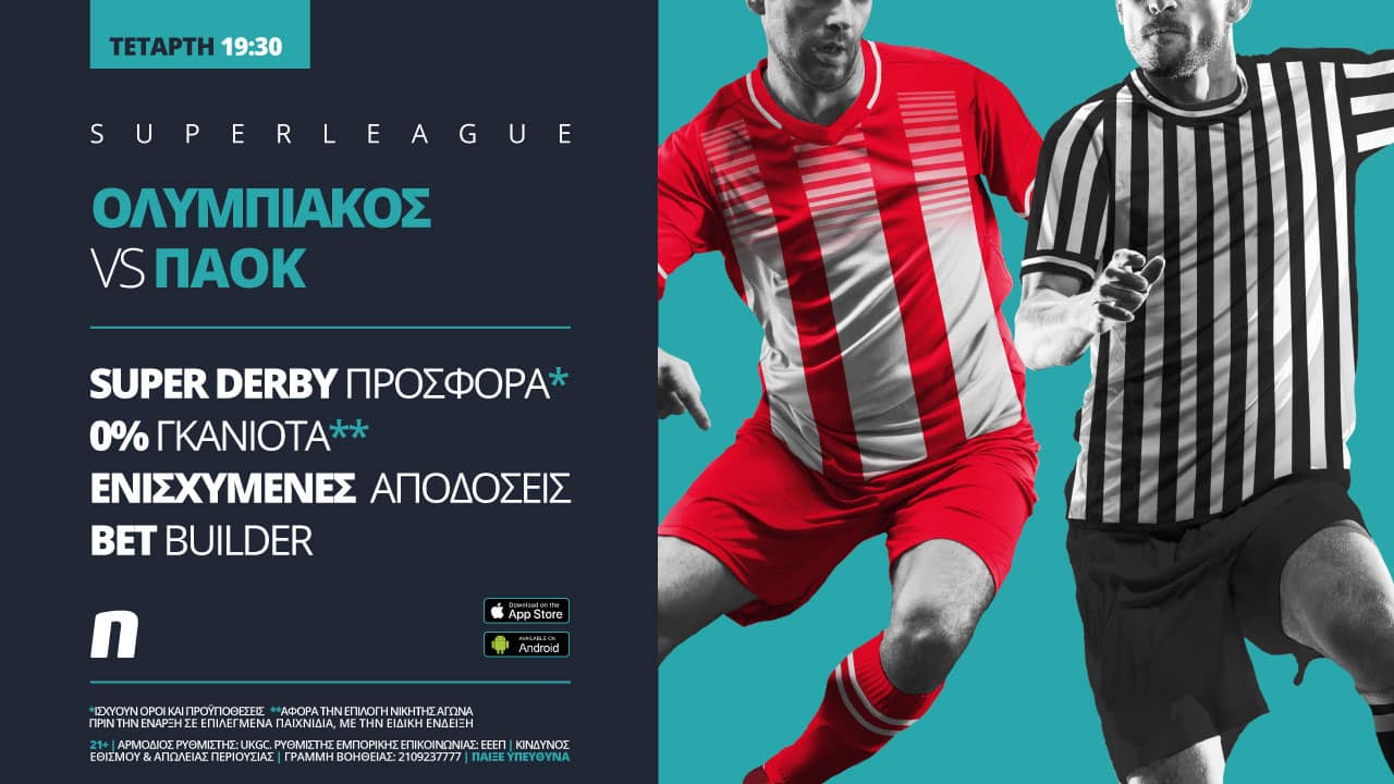 Ολυμπιακός – ΠΑΟΚ με σούπερ προσφορά* & ενισχυμένες αποδόσεις