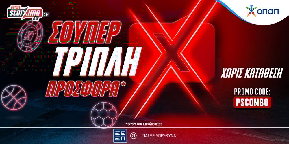 Με τον κωδικό (promo code) PSCOMBO λαμβάνεις τη μοναδική τριπλή προσφορά γνωριμίας* του Pamestoixima.gr! Μόνο για λίγες μέρες απολαμβάνεις σούπερ δώρα* χωρίς κατάθεση!