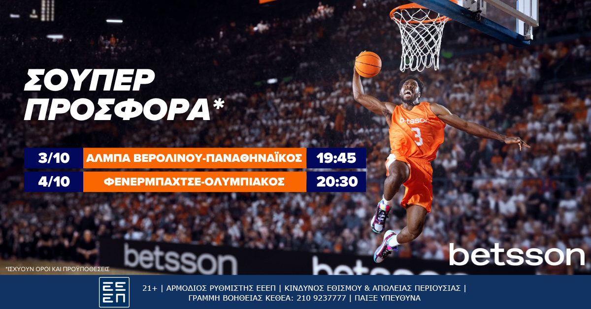 ΕΔΩ ΘΑ ΜΑΘΕΤΕ ΤΑ ΠΑΝΤΑ ΓΙΑ ΤΗΝ ΣΟΥΠΕΡ ΠΡΟΣΦΟΡΑ* ΤΗΣ BETSSON ΓΙΑ ΤΙΣ ΜΑΧΕΣ ΤΩΝ ΔΥΟ ΕΛΛΗΝΙΚΩΝ ΟΜΑΔΩΝ ΣΤΗΝ ΕΥΡΩΛΙΓΚΑ