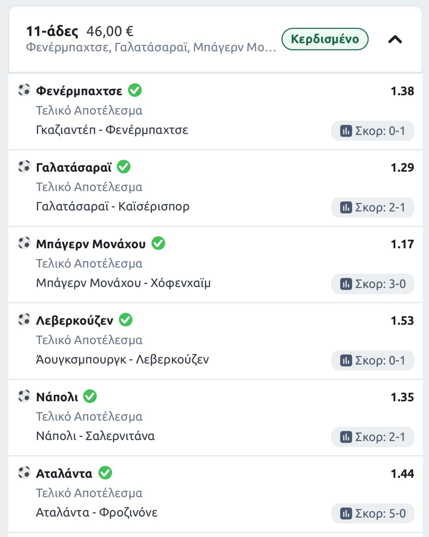 Όμως, όπως και να ‘χει, ο σημερινός μάγκας έπαιξε έντεκα φαβορί σε αποδόσεις από 1.53 και κάτω και δικαιώθηκε.