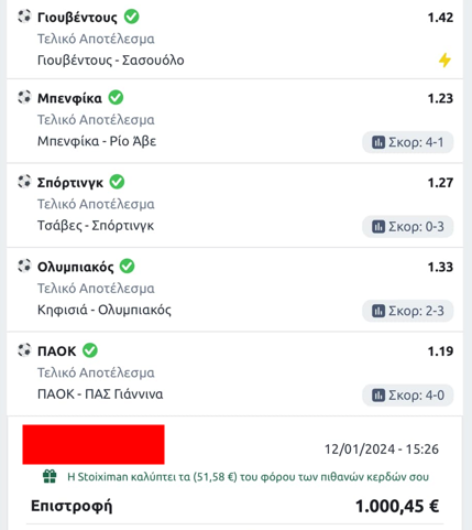 Τεράστια νίκη στο στοίχημα: Κέρδισε €86.244,88 με 7 επιλογές στο Pamestoixima.gr!