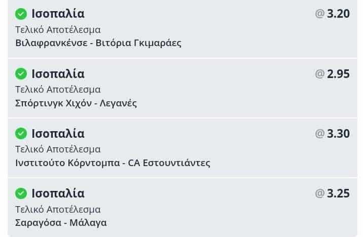 Τέσσερα χινάρια. Δύο από Β’ Ισπανίας, τα Σπόρτινγκ Χιχόν – Λεγανές και Σαραγόσα – Μάλαγα. Ένα από το πορτογαλικό Λιγκ Καπ, το Βιλαφρανκένσε – Γκιμαράες. Κι ένα από την Αργεντινή, το Ινστιτούτο Κόρντομπα – Εστουντιάντες.