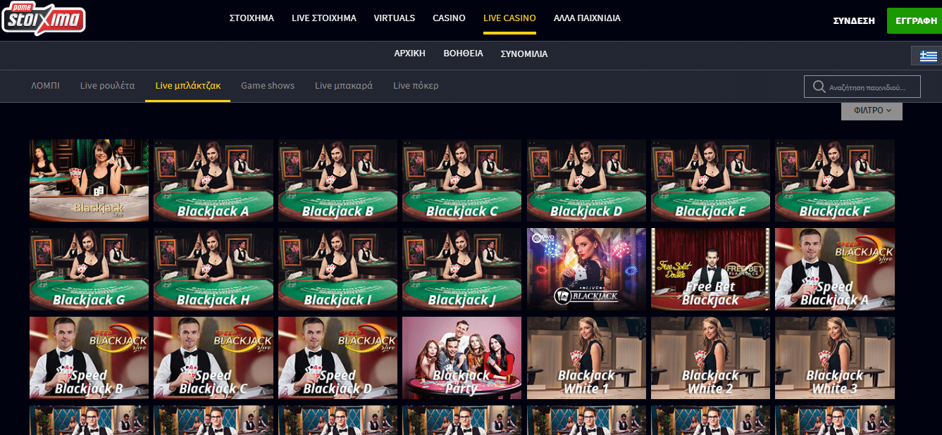 Στο casino του Pamestoixima.gr θα βρεις μεγάλη ποικιλία από τραπέζια ζωντανού μπλάκτζακ.