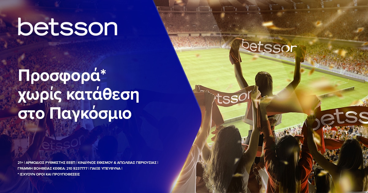 Η διασκέδαση στην Betsson βρίσκεται πάντα στο 100%, με τους πελάτες της να απολαμβάνουν μία ξεχωριστή έκπληξη* χωρίς την προϋπόθεση κατάθεσης για το Παγκόσμιο!