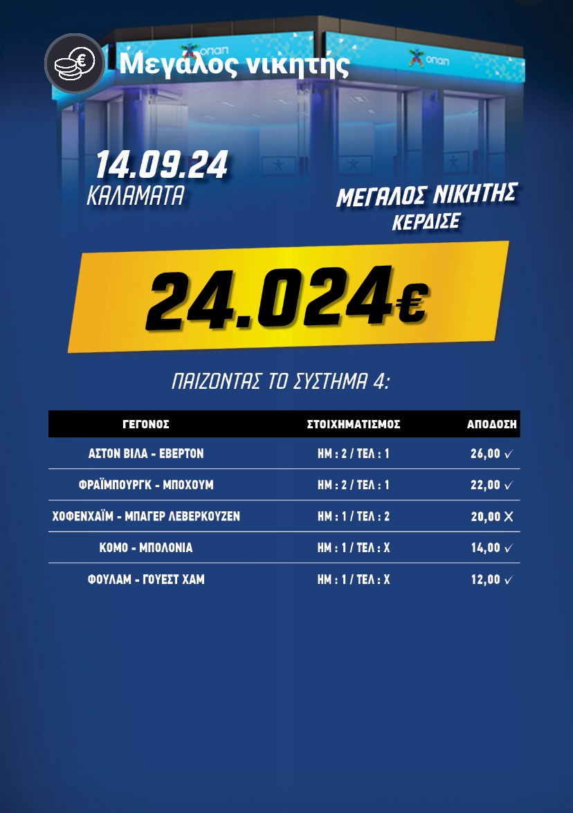 Ωστόσο, στο ίδιο δελτίο είχε και το 1/2 της Χόφενχαϊμ με τη Λεβερκούζεν. Αν το έπιανε κι αυτό, η συνολική απόδοση της δελτιάρας θα άγγιξε το, κρατηθείτε, 1.921.920! Απίστευτο νούμερο που ειλικρινά, δεν έχουμε ξαναδεί σε δελτίο που να έφτασε τόσο κοντά.
