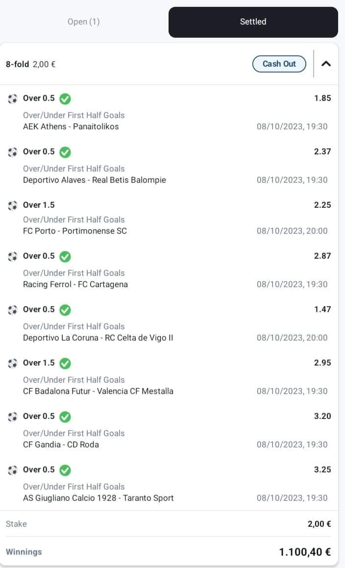 Μην τα πολυλογούμε, τσεκαρισμένα τα επτά. Το όγδοο όμως, η ριμάδα η Πόρτο, να έχει κολλήσει στο 1-0. Μικρό το κακό όμως από τη στιγμή που υπάρχει το cash out.