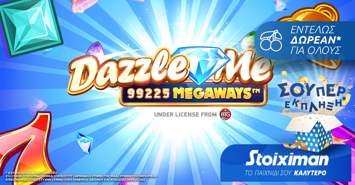 Το ολοκαίνουργιο και αποκλειστικό “Dazzle Me Megaways” ήρθε στη Stoiximan με μία δωρεάν* έκπληξη που δεν χάνεται!