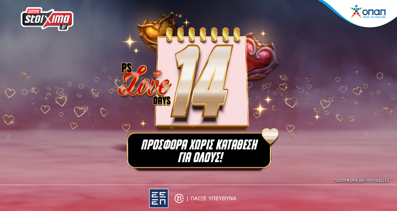 Φανταστικά δώρα* σε περιμένουν στο Pamestoixima.gr για μία συναρπαστική εμπειρία μόνο για σήμερα (14/02) στο PS Love Days από το Pamestoixima.gr.