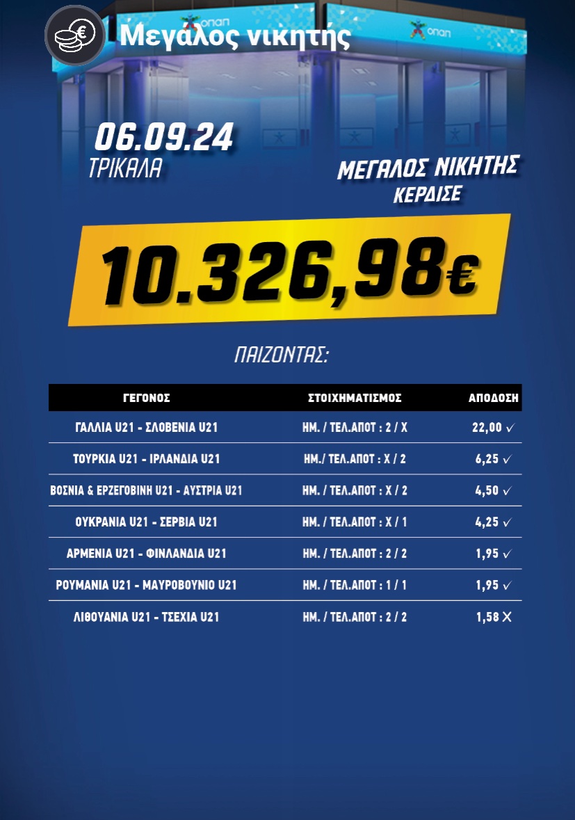 *Ισχύουν όροι & προϋποθέσεις. 21+| ΑΡΜΟΔΙΟΣ ΡΥΘΜΙΣΤΗΣ: ΕΕΕΠ | ΚΙΝΔΥΝΟΣ ΕΘΙΣΜΟΥ & ΑΠΩΛΕΙΑΣ ΠΕΡΙΟΥΣΙΑΣ | ΓΡΑΜΜΗ ΒΟΗΘΕΙΑΣ ΚΕΘΕΑ: 2109237777 | ΠΑΙΞΕ ΥΠΕΥΘΥΝΑ.