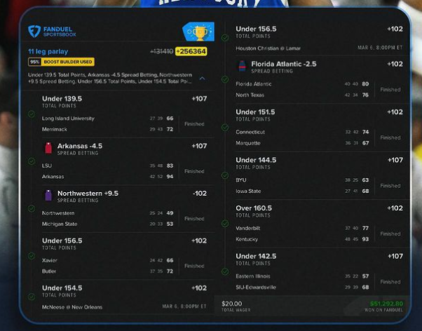 Έπαιξε στα χάντικαπ, έπαιξε με τα lines στο Under-Over και έβγαλε δελτίο απόδοσης 1.315! Ωστόσο, επειδή κάθε στοιχηματική εταιρία που σέβεται τον εαυτό της και τον παίκτη προσφέρει μπόνους στο παρολί, έτσι και αυτή του διπλασίασε σχεδόν την απόδοση, φτάνοντάς τη στο 2.565!