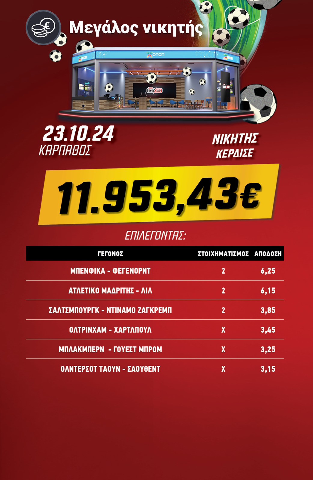 Τεράστια νίκη στο στοίχημα: Κέρδισε €86.244,88 με 7 επιλογές στο Pamestoixima.gr!