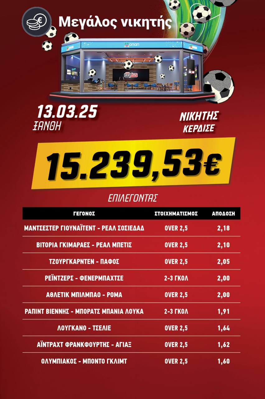 *Ισχύουν όροι & προϋποθέσεις. 21+| ΑΡΜΟΔΙΟΣ ΡΥΘΜΙΣΤΗΣ: ΕΕΕΠ | ΚΙΝΔΥΝΟΣ ΕΘΙΣΜΟΥ & ΑΠΩΛΕΙΑΣ ΠΕΡΙΟΥΣΙΑΣ | ΓΡΑΜΜΗ ΒΟΗΘΕΙΑΣ ΚΕΘΕΑ: 2109237777 | ΠΑΙΞΕ ΥΠΕΥΘΥΝΑ.