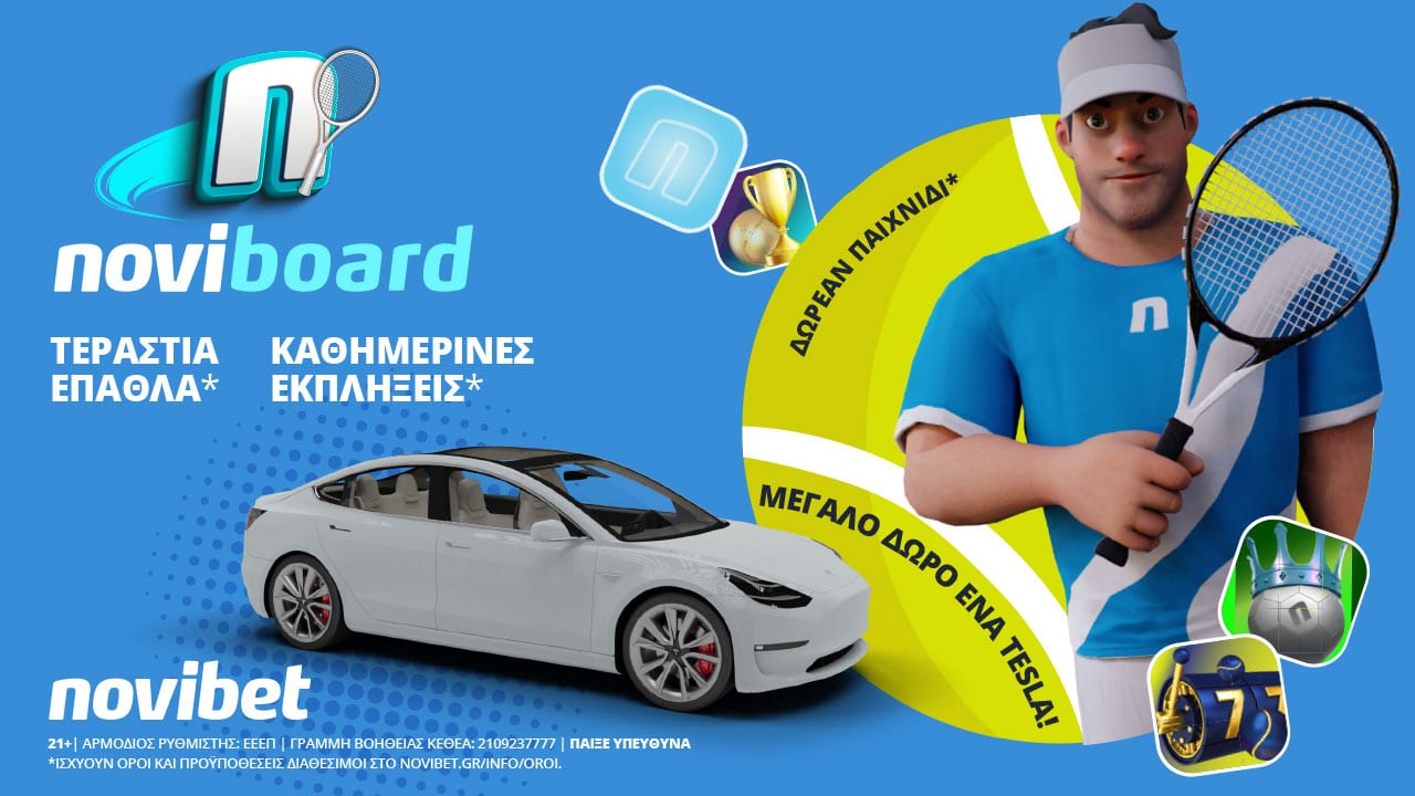 Το συναρπαστικό NoviBoard επιστρέφει γεμάτο με ακόμα περισσότερα έπαθλα* και μεγάλο δώρο ένα TESLA Model 3! Μάλιστα, αυτή την φορά, η λειτουργία του παιχνιδιού προσαρμόζεται στις… τάσεις της εποχής, αρχής γενόμενης με το Australian Open.