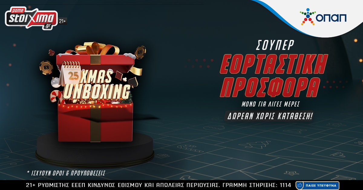 Παράλληλα, από σήμερα (19/01) και έως τις 8 Ιανουαρίου είναι διαθέσιμη στο Pamestoixima.gr Live Casino σούπερ εορταστική προσφορά*! Μόνο για λίγες μέρες! Δωρεάν χωρίς κατάθεση!