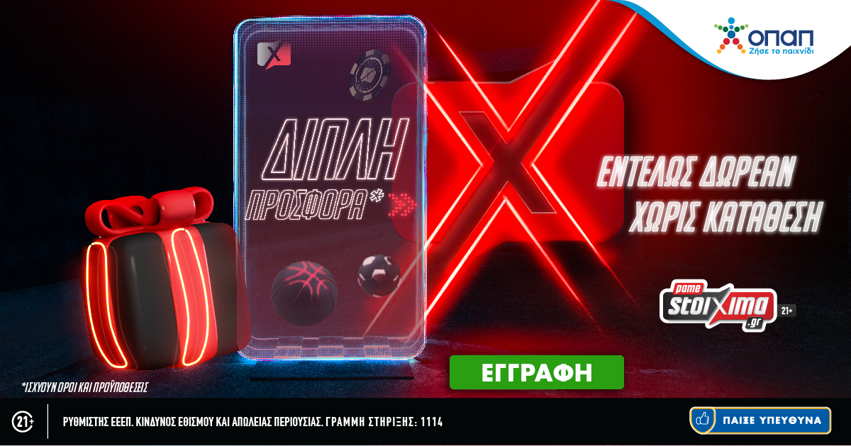 Σούπερ διπλή προσφορά* δωρεάν χωρίς κατάθεση από το Pamestoixima.gr!