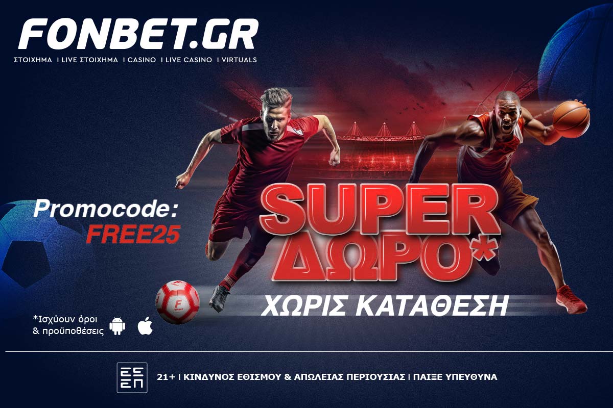 Από 20/10/2023 έως και 31/10/2023, έρχεσαι στη Fonbet, βάζεις promo code FREE25 και μπαίνεις στο παιχνίδι.