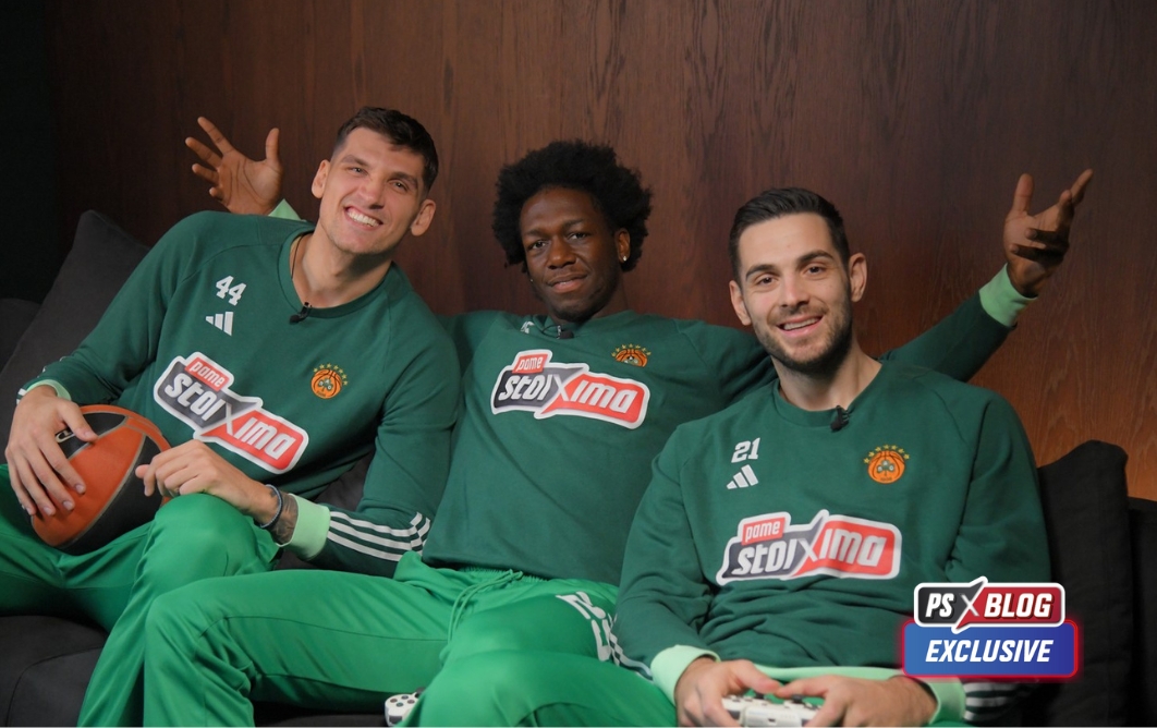 Ναν, Μήτογλου και Παπαπέτρου σε ξεκαρδιστικές στιγμές στο αποκλειστικό backstage των αποκαλυπτηρίων της νέας φανέλας του «επτάστερου» Παναθηναϊκού AKTOR που εξασφάλισε το PS Blog.