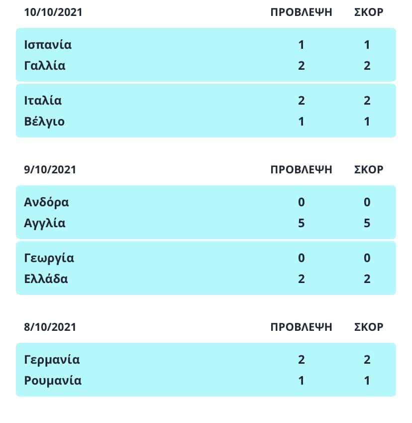 Παρακάτω μπορείτε να δείτε τις σωστά επιβεβαιωμένες προβλέψεις του: