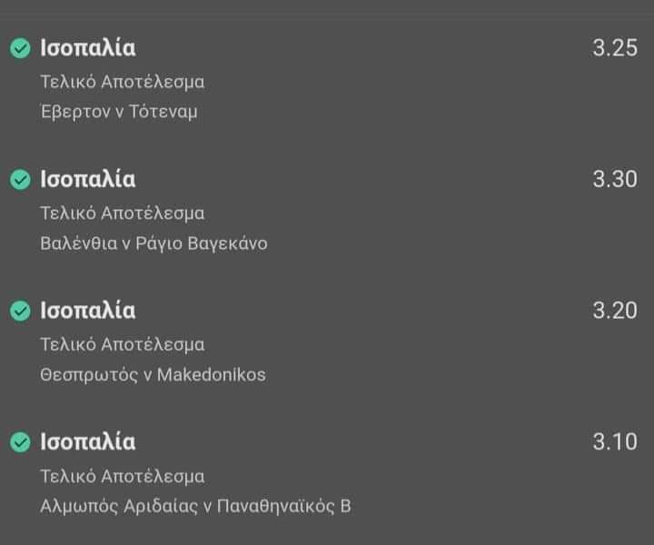 Τα δευτεριάτικα ήταν τα Έβερτον – Τότεναμ στο 3.25 και Βαλένθια – Ράγιο Βαγιεκάνο στο 3.30.