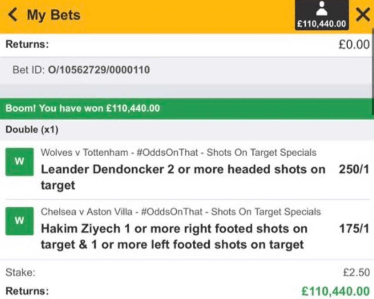 Οι αποδόσεις τις οποίες διάλεξε ο συγκεκριμένος παίκτης ήταν αρκετά ψηλές και για αυτό του χάρισαν και αυτό το τεράστιο κέρδος. Στο πρώτο ματς η συνολική απόδοση σε δεκαδική μορφή ήταν 251.00 μονάδες, ενώ στο δεύτερο 176.00 μονάδες!