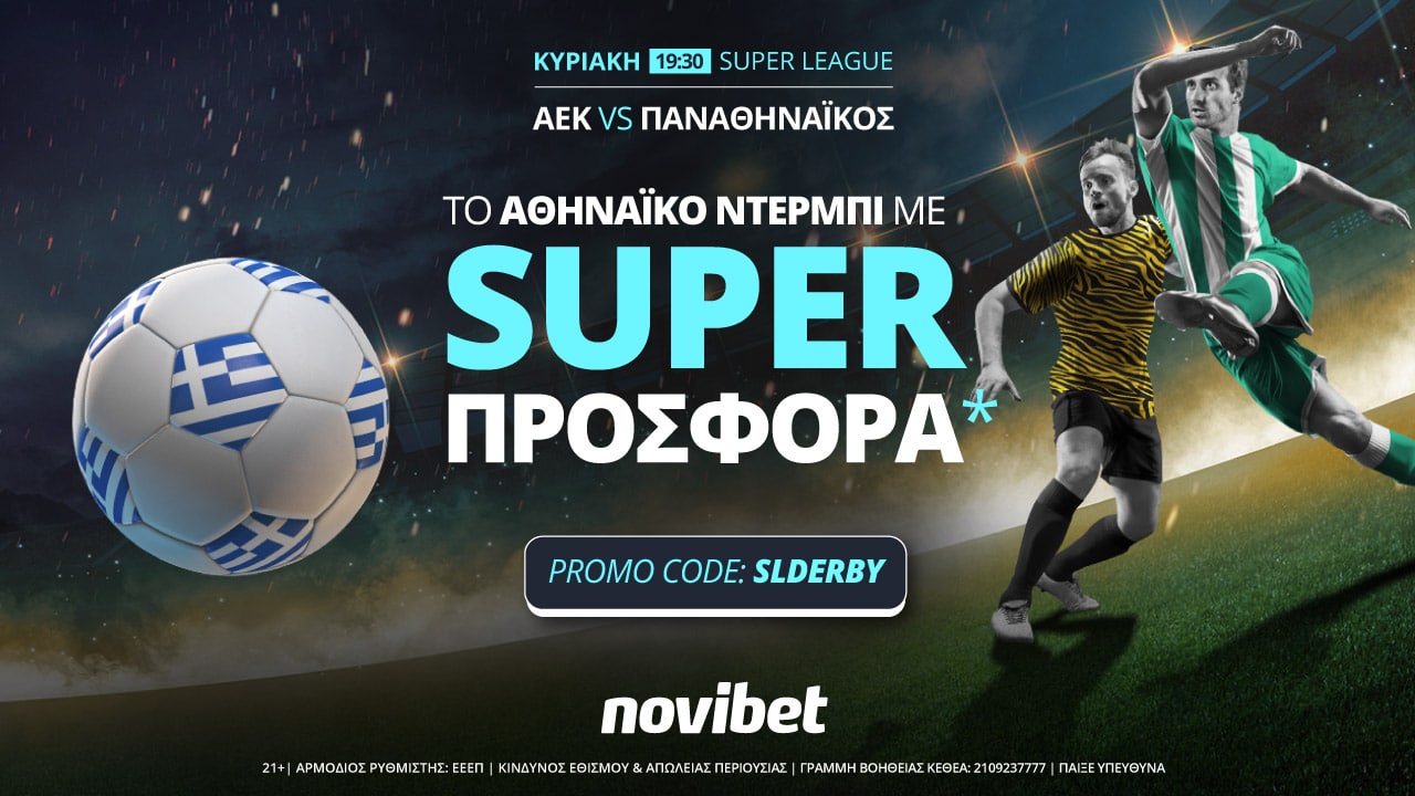 Η Novibet στην προσπάθεια αναβάθμισης των υπηρεσιών της και θέλοντας να προσφέρει την κορυφαία εμπειρία παιχνιδιού και στο ΑΕΚ-Παναθηναϊκός, λανσάρει μία μοναδική προσφορά*, με αφορμή το μεγάλο ντέρμπι της 17ης αγωνιστικής της Super League!