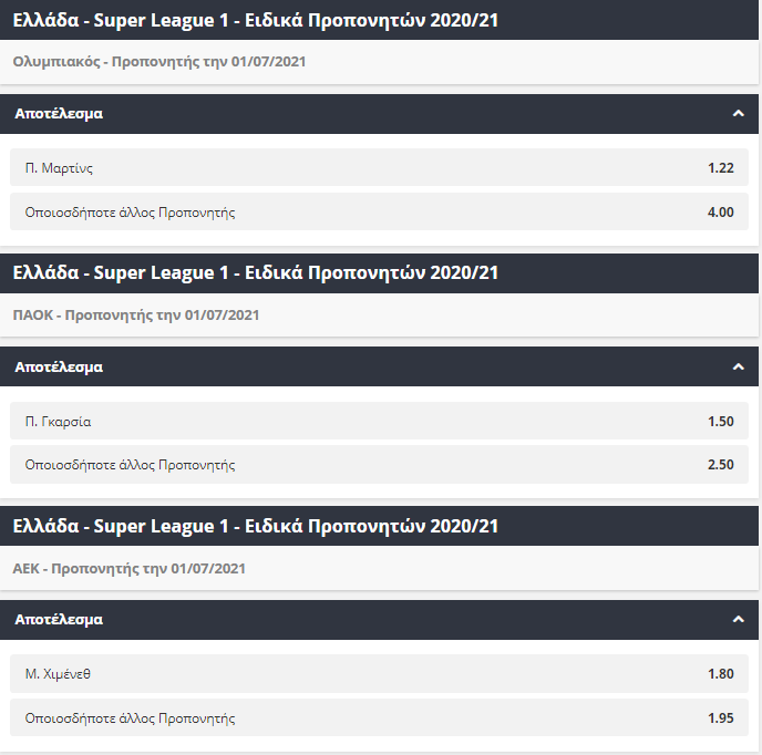 Δείτε αναλυτικά όλα τα στοιχήματα: